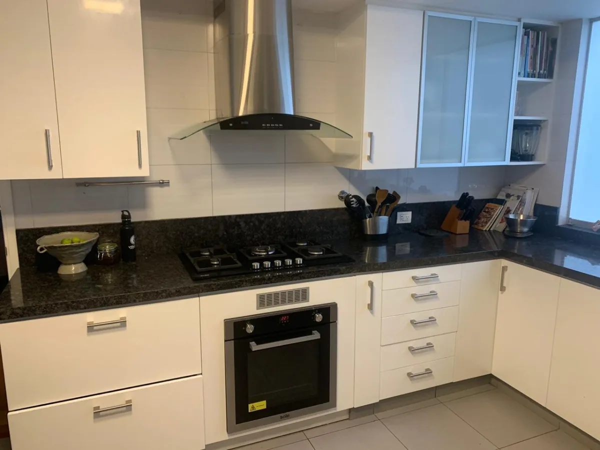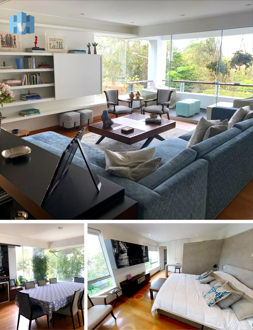 Este departamento de 224 m2 cuenta con 3 dormitorios, todos con baño propio, y un baño de visitas. La amplia sala-comedor tiene acceso a una terraza con vistas al parque privado con mamparas de vidrio, lo que los hace súper iluminados naturalmente. Además, cuenta con una espaciosa cocina con comedor de diario.